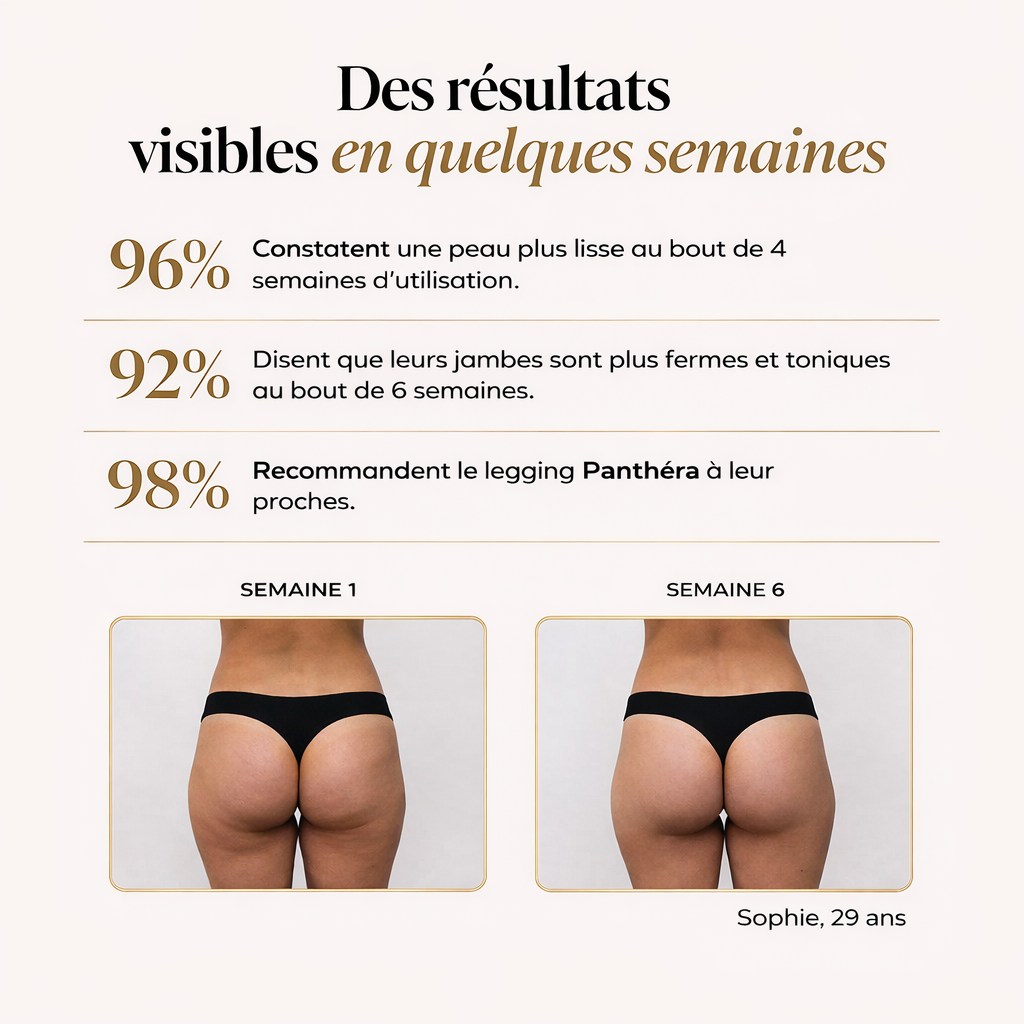 Le legging 3D Panthéra™ agit comme une seconde peau : il lisse, raffermit et galbe instantanément vos formes tout en restant incroyablement confortable.